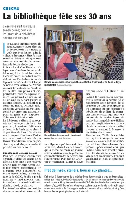 Le samedi 8 novembre 2025, la médiathèque Henri Blanc-Garin a célébré ses 30 ans. Un moment de partage convivial organisé par les bénévoles de l'association Culture et loisirs.