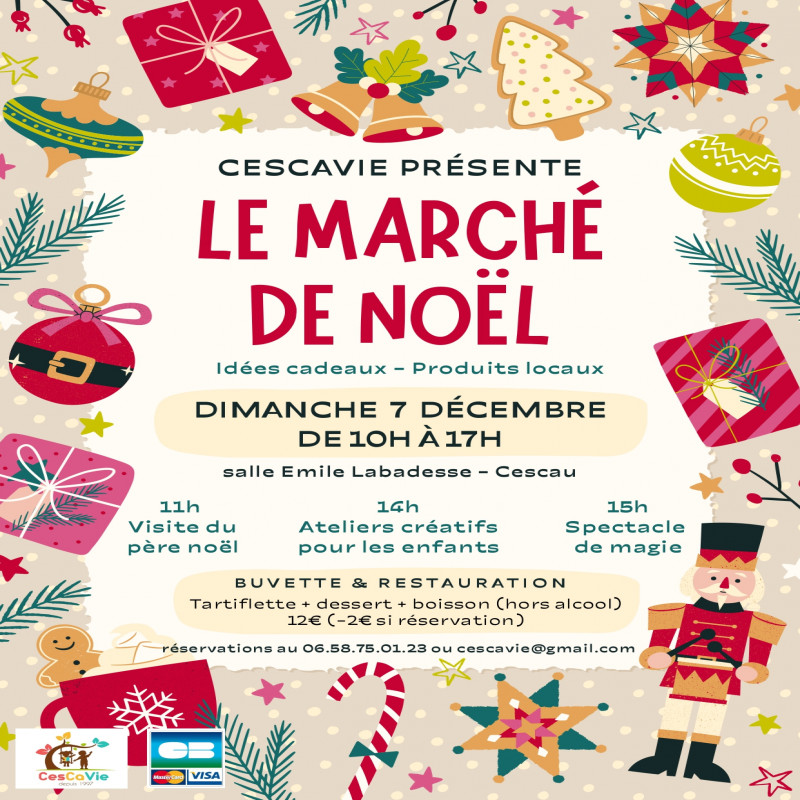Venez nombreux découvrir les animations et stands du marché de noël organisé par l'association Cescavie.